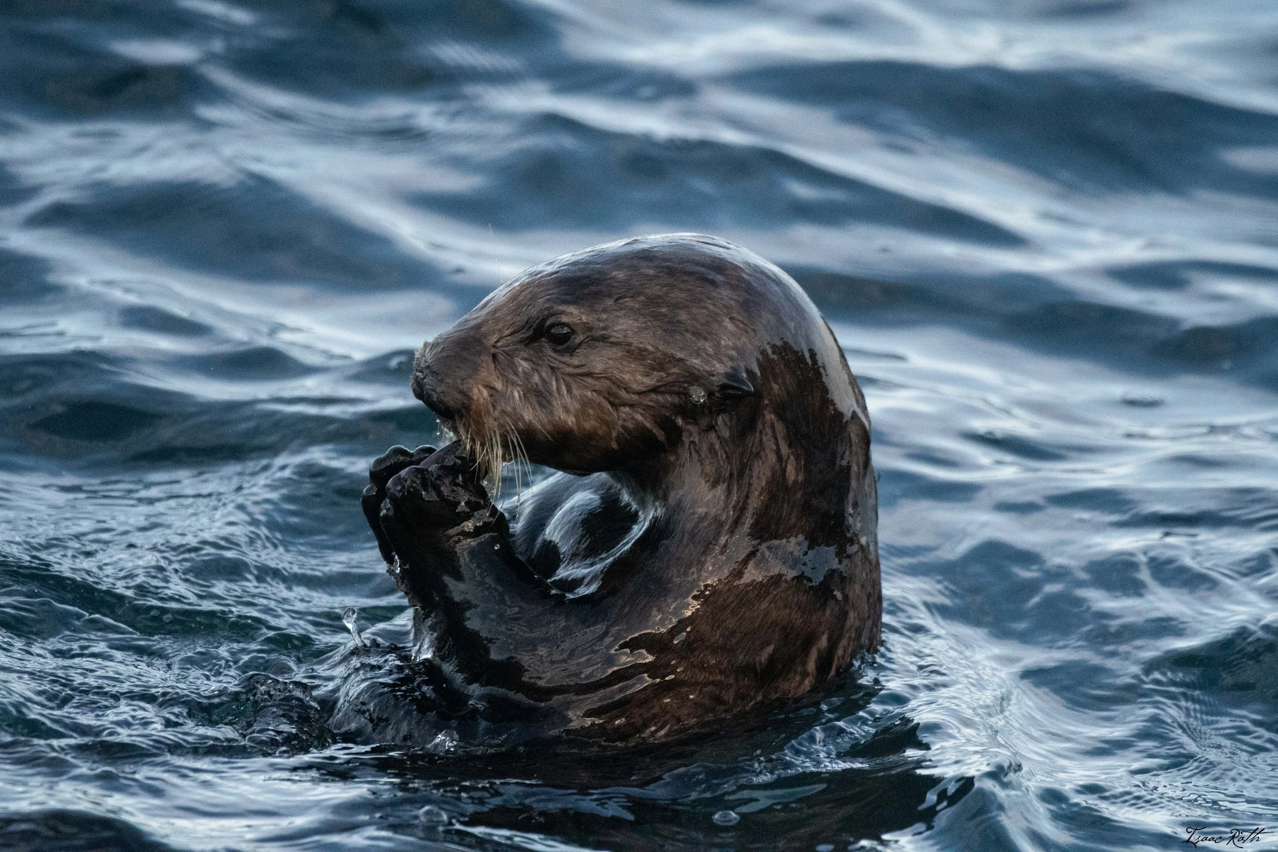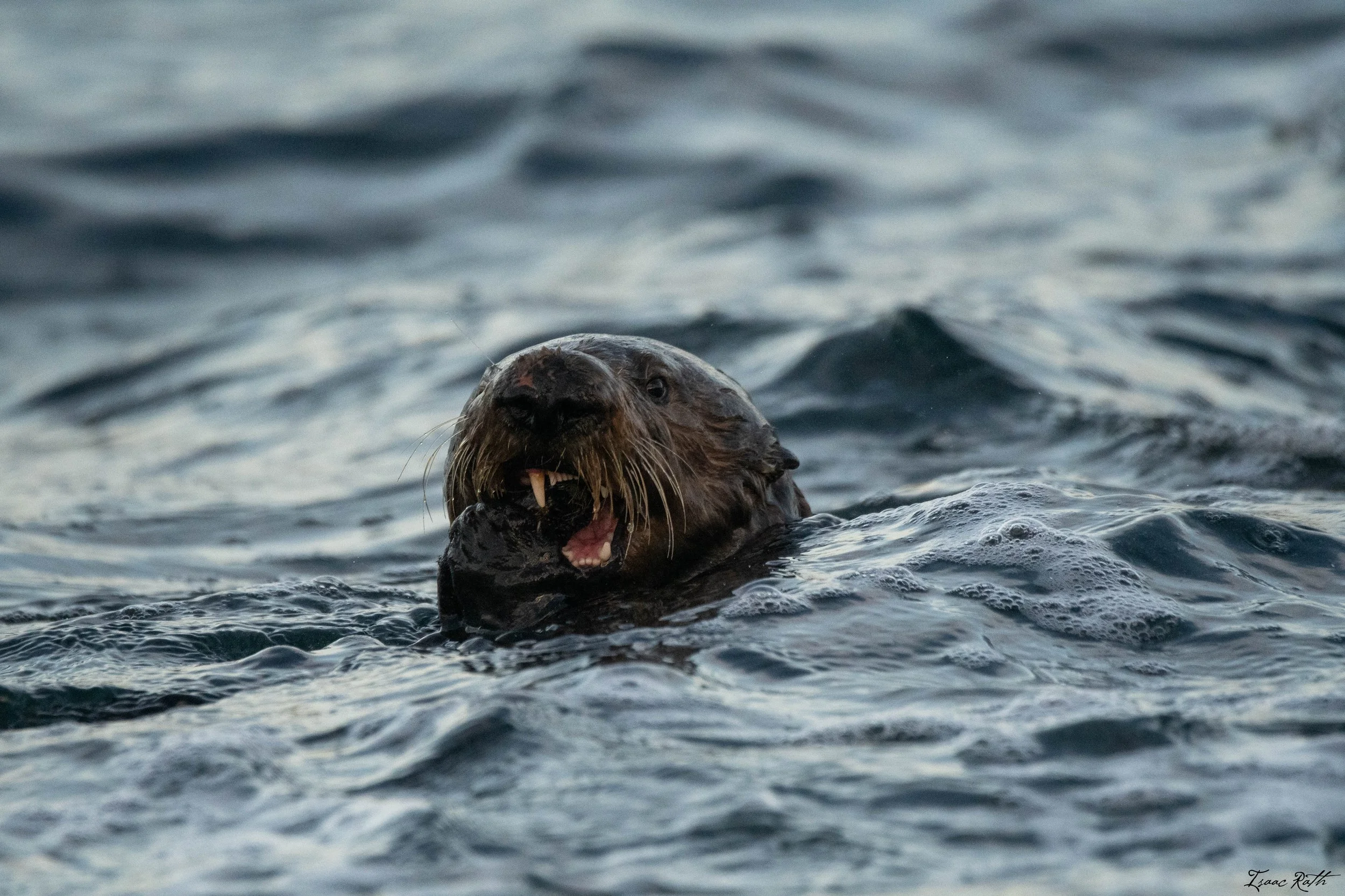 I was hoping to get a photo of an otter feeding, and this was a challenging shot to capture because I wanted to get down to eye level with the otter, which brought me very close to the waves. As I approached the water, Katie would let me know if a big wave was coming and where the otter was. With the waves making it difficult to keep constant eyes on the otter, Katie guided me on where he was likely to surface. After a lot of patience and some time, one of the otters popped up only six meters away from me. I stayed still, and the otter wasn't bothered by my presence, allowing me to get some good shots of him. Afterward, I turned to give Katie a thumbs up, and at that moment, a wave crashed right below me, soaking me with salt water. Good spotters are hard to find these days…