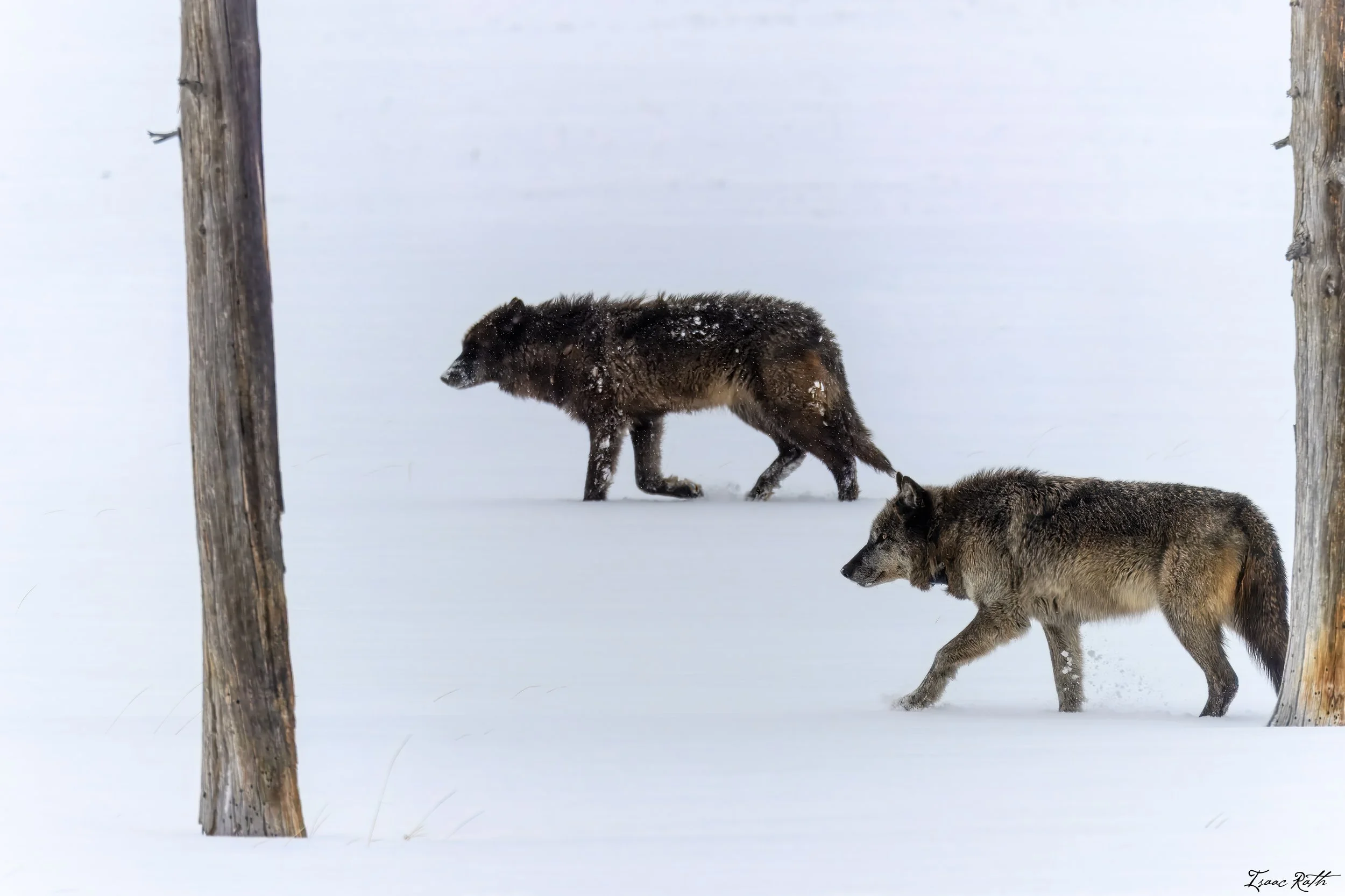 Over the next few weeks, the Wapitis came over to Old Faithful and even made an appearance in the Upper Geyser Basin. I would often see them around the area actively hunting, specifically near Black Sand and Biscuit Basin. I didn’t get to see it, but the pack did go back down the River and made a kill down there on one of my off days. This was a young bison, and this meant they were done with it that day, and back to hunting two days later, again down at Old Faithful. These guys can cover a lot of ground in just a few hours. For the rest of the season, we had some good views of the wolves, but nothing as long or as good as we had over Valentine's Day. While of course I wish I could’ve spent the day with Katie, but the Wapitis made a great replacement Valentine!